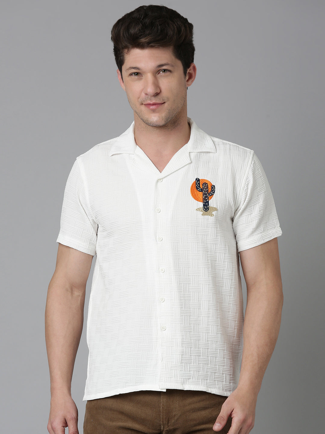 • Maroon Floruit Mandarin Collar Shirt for Men