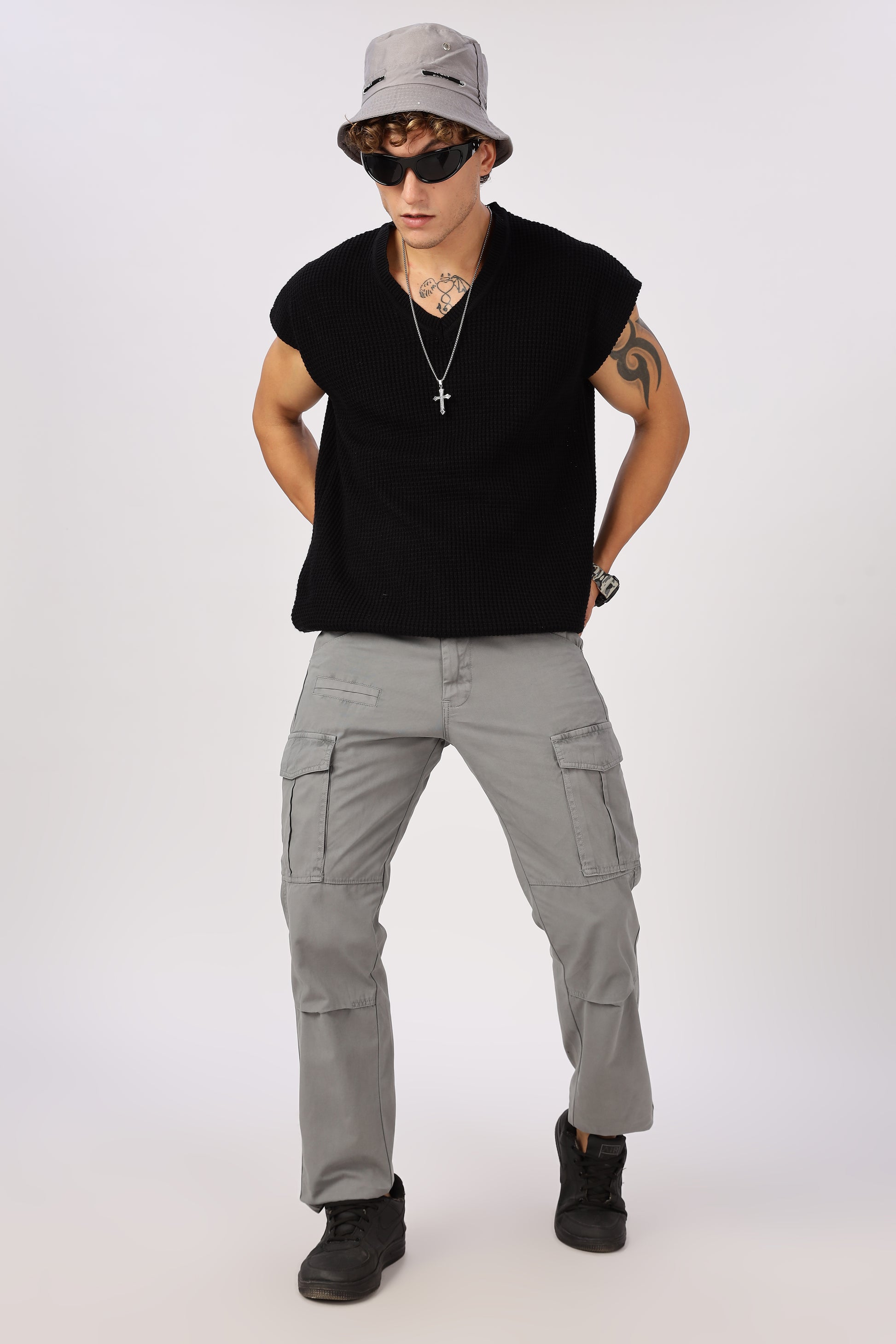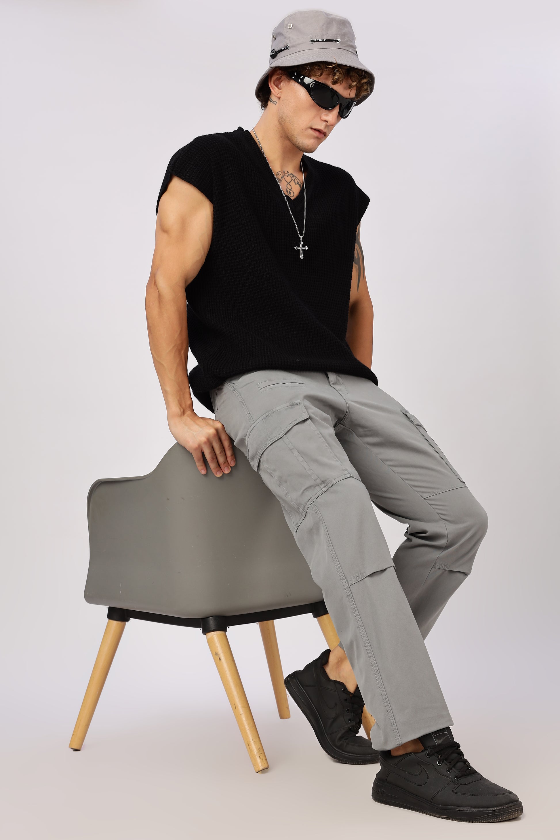 Men Dyed Bulky Cargo-Grey