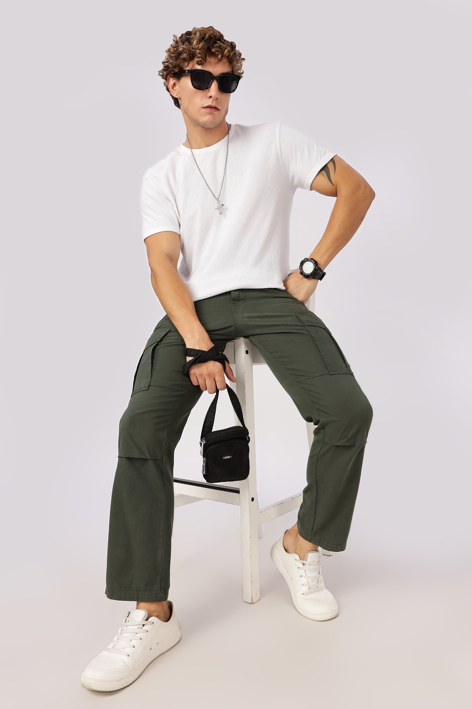 Men Dyed Bulky Cargo-Olive